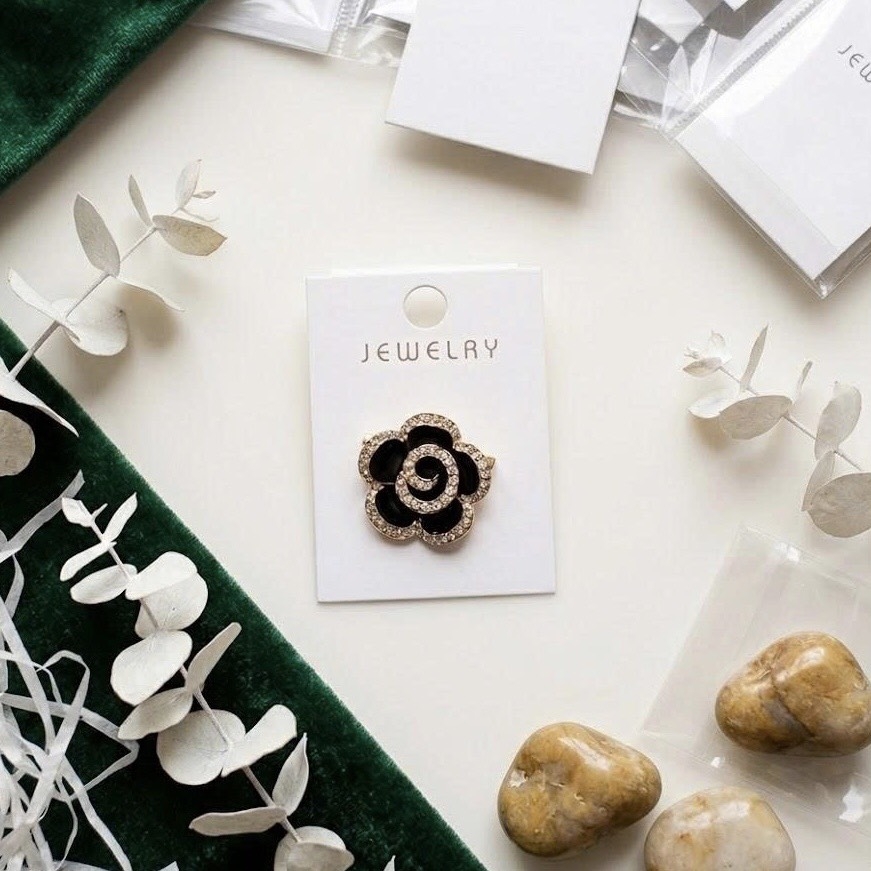 Cài áo đính đá hoa đen 070140