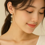 Bông tai nơ ngọc trai vàng xi 925 dài MH