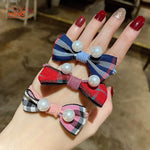 Dây cột tóc nơ kẻ đính ngọc
