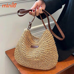Túi cói trơn quai da sp672 Túi cói trơn quai da sp672