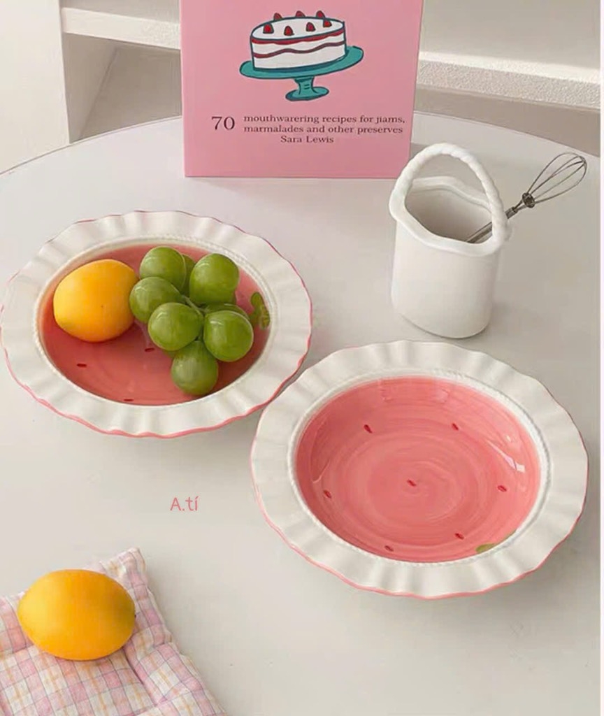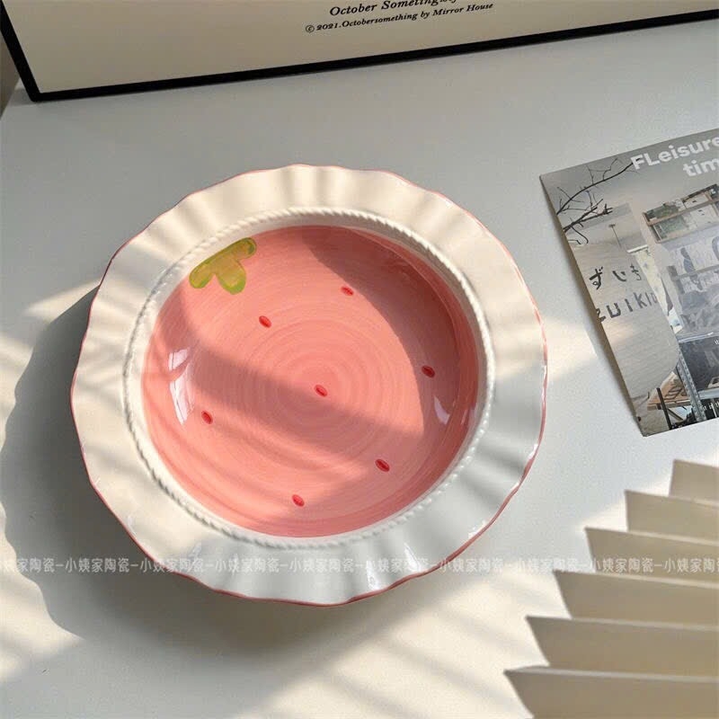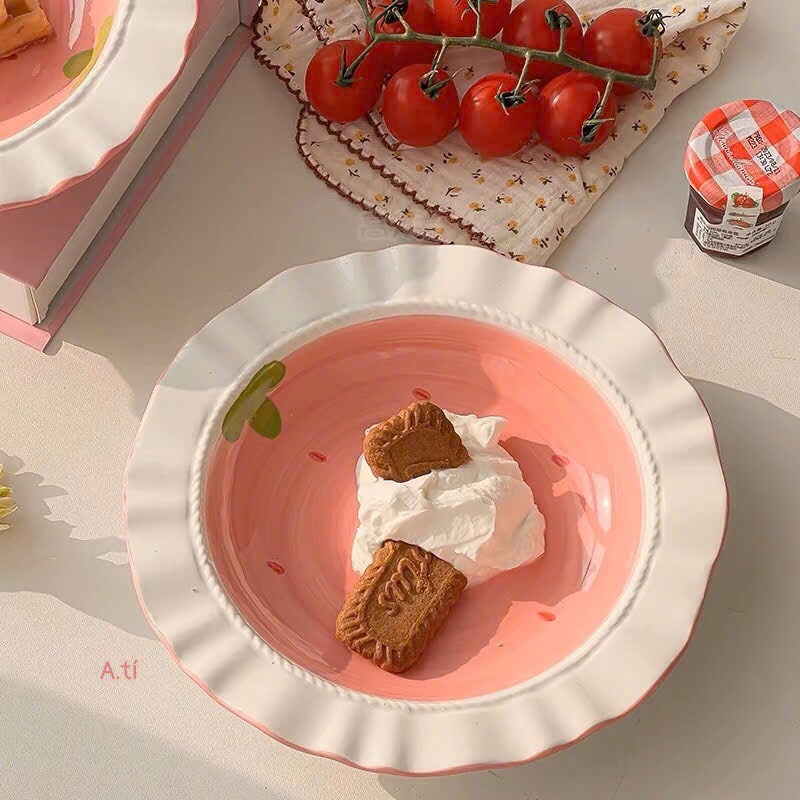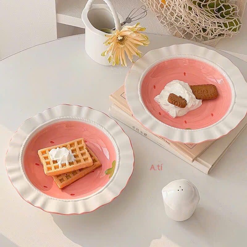 Thố dâu tây viền sóng 6.5in