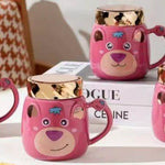 Ly cốc sứ gấu dâu nắp gương
