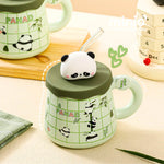 Ly cốc sứ gấu trúc xanh nắp silicone