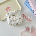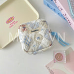 Scrunchies tone xanh trắng thêu gấu Scrunchies tone xanh trắng thêu gấu