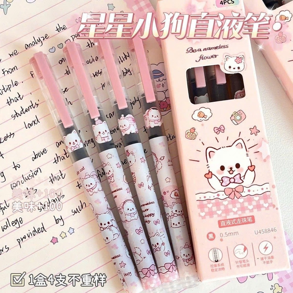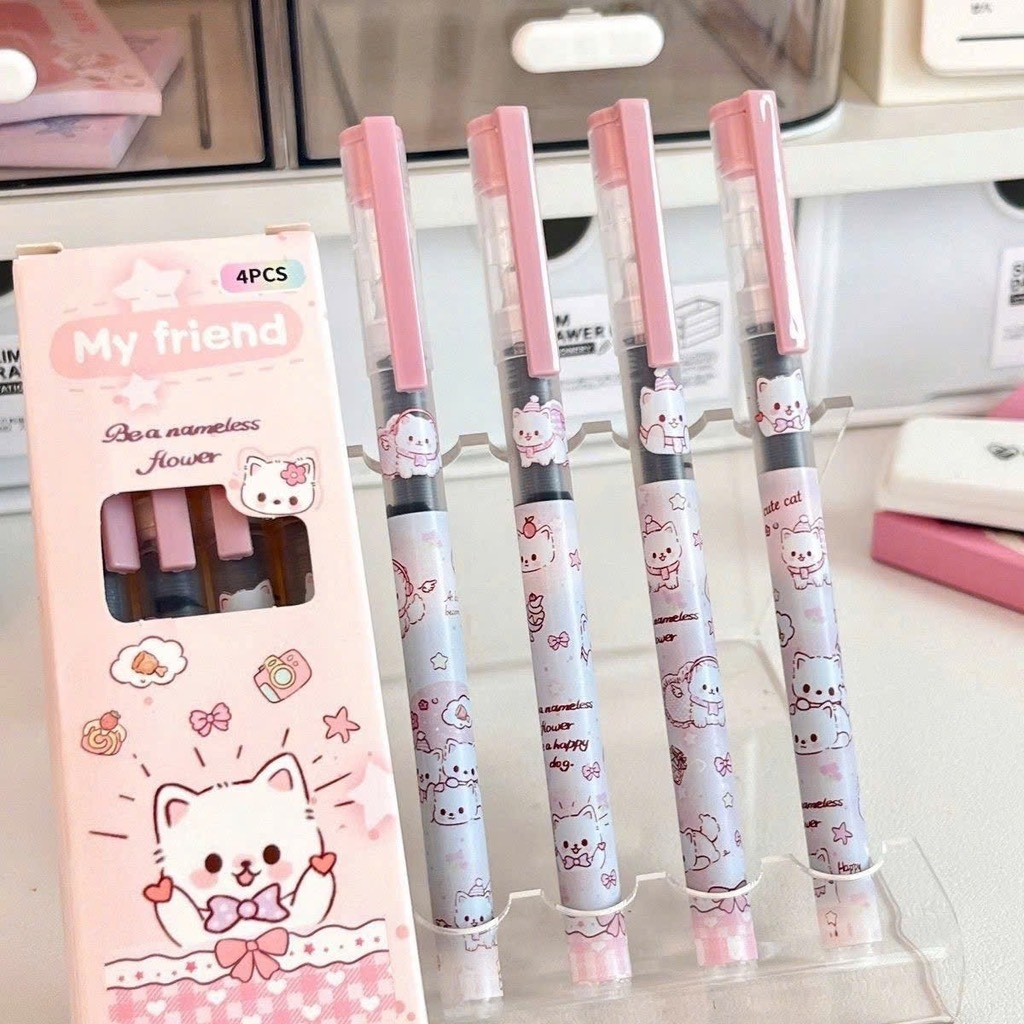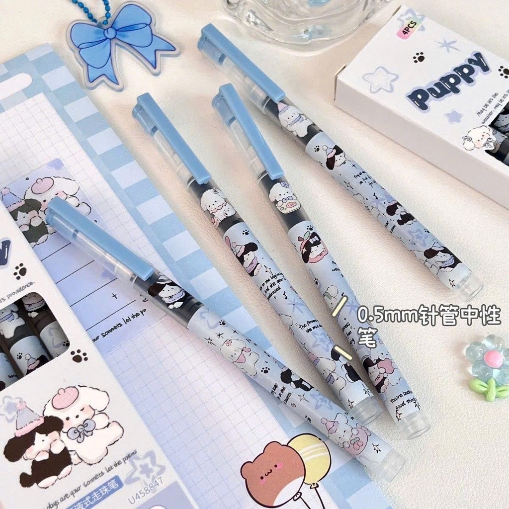 Hộp 4 bút mèo hồng, puppy xanh