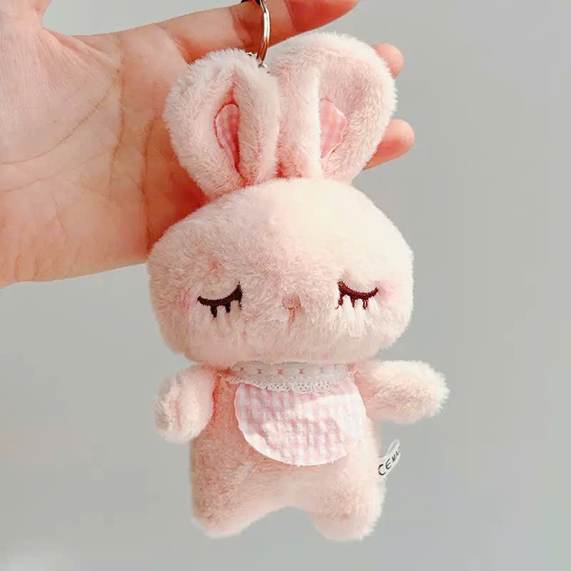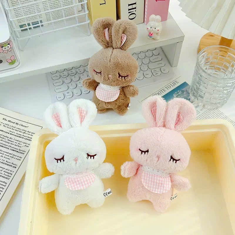 Móc khoá bông thỏ khăn kẻ