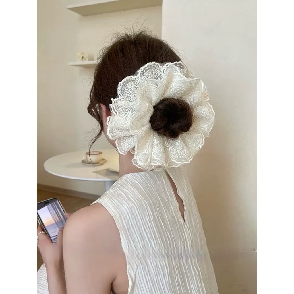 Scrunchies trắng ren full 4 lớp