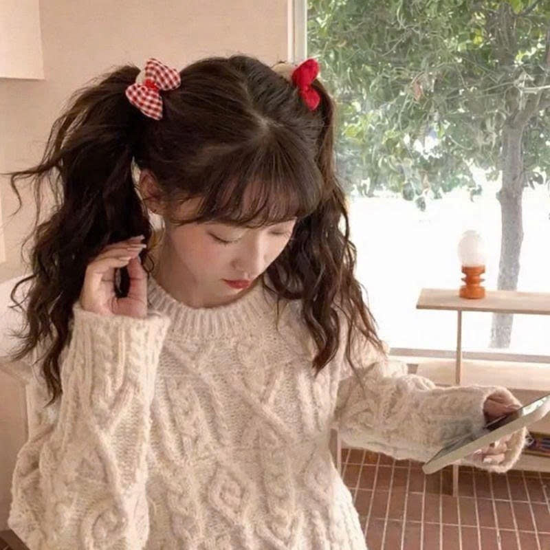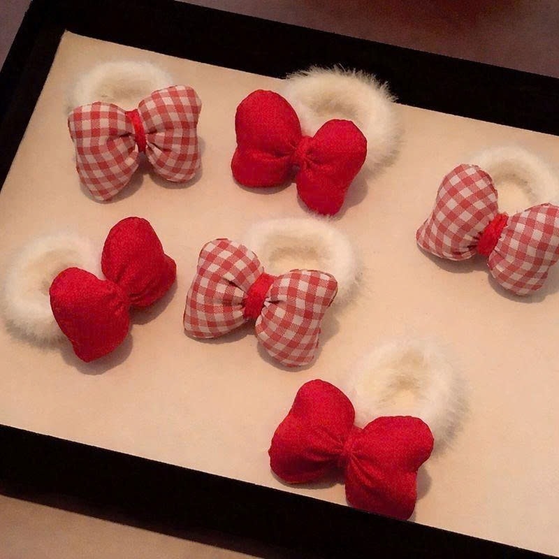 Set 2 cột tóc nhí lông nơ đỏ NH